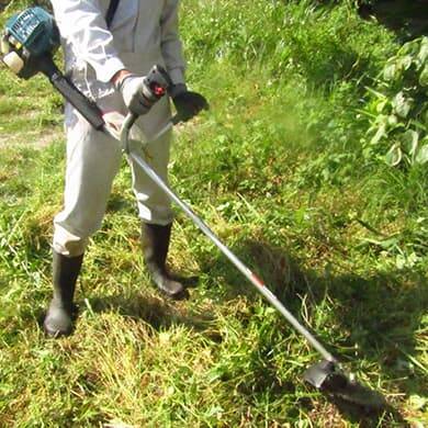 重い草刈り機での作業時は普段どおりに動けなくなることも珍しくありません。特に草が伸び切っているような場所では、地面の形が年数の経過で変化していることもあります。
