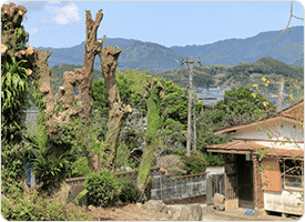 伐採や抜根など、ご要望の方法で対応します。もちろん、伐採した樹木の処分も致します。